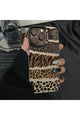 iPhone 15 Pro Max Uyumlu Kılıf Leopar Desenli Kahverengi Çizgili Metalik Tuşlu Kamera Çıkıntılı
